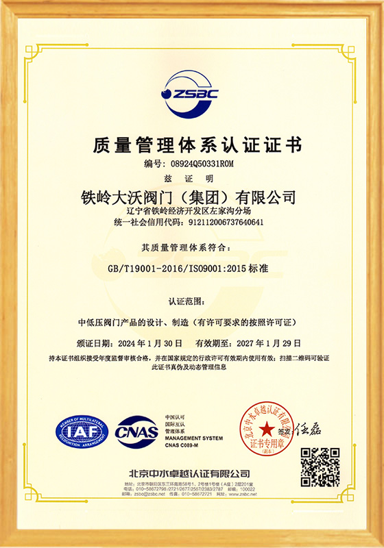 鐵嶺大沃閥門(集團)有限公司,是原鐵嶺閥門廠改制后,以原國有企業(yè)各領域的骨干精英為核心所組建的創(chuàng)新型企業(yè)。公司在傳承老“鐵閥”所積淀的“管理嚴格、質量第一”精神的同時,將“以客戶為中心,市場為導向,科技創(chuàng)新為支撐”作為發(fā)展理念;將“修為礪器,誠信匠心”作為核心價值觀。在近十年的發(fā)展歷程中,鐵嶺大沃人通過不懈地探索和創(chuàng)新,逐步形成了獨特的經營模式及核心競爭力。成為遼寧省企業(yè)廳命名的省級創(chuàng)新型企業(yè);成為通過ISO 9001質量管理體系、ISO14001環(huán)境管理體系和ISO 18001職業(yè)健康安全管理體系認證,以及特種設備制造許可證認證......